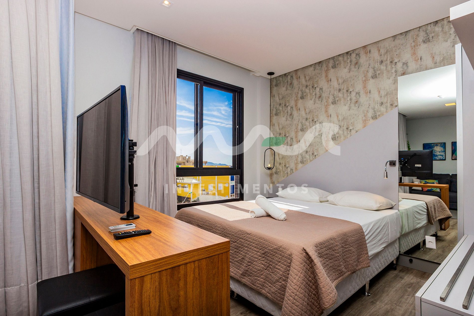 Aion Suites 205 – Lindo apartamento com Vista para o Mar, a 60m da Praia de Bombinhas, com Piscina e Academia no Rooftop.