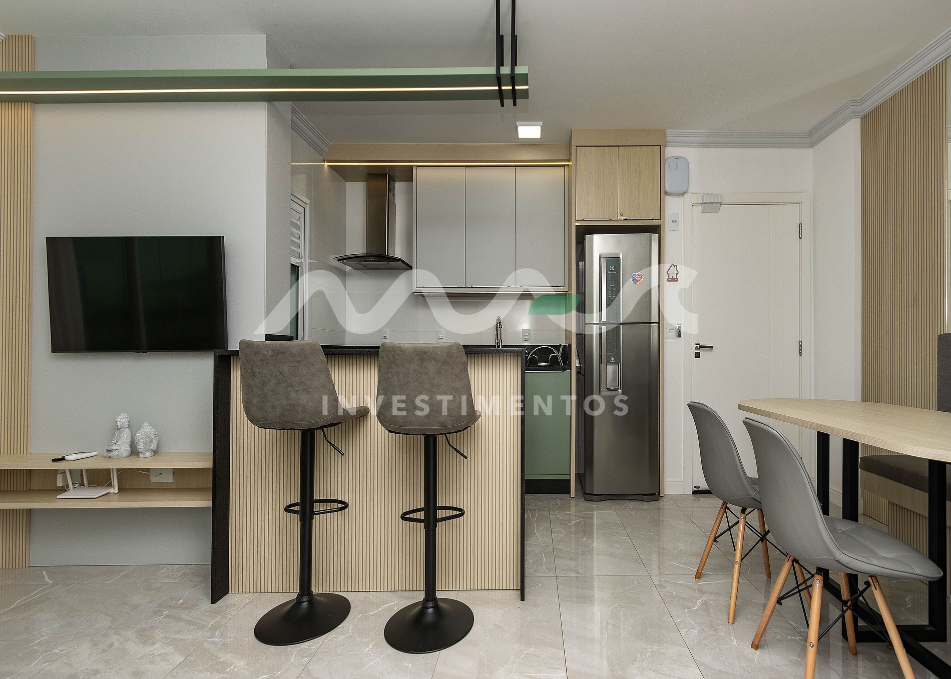 Sala de jantar, estar e cozinha totalmente integradas e equipadas