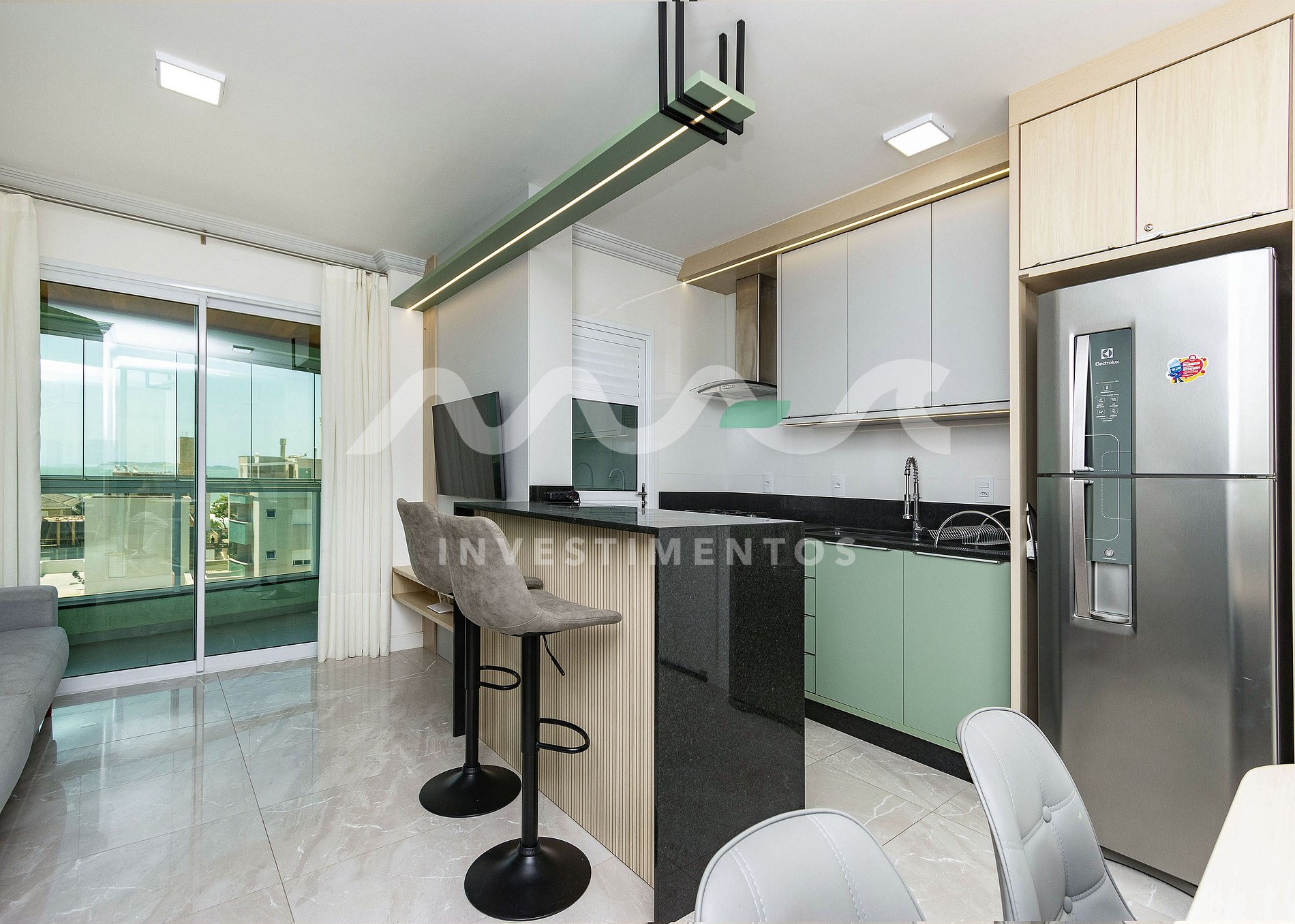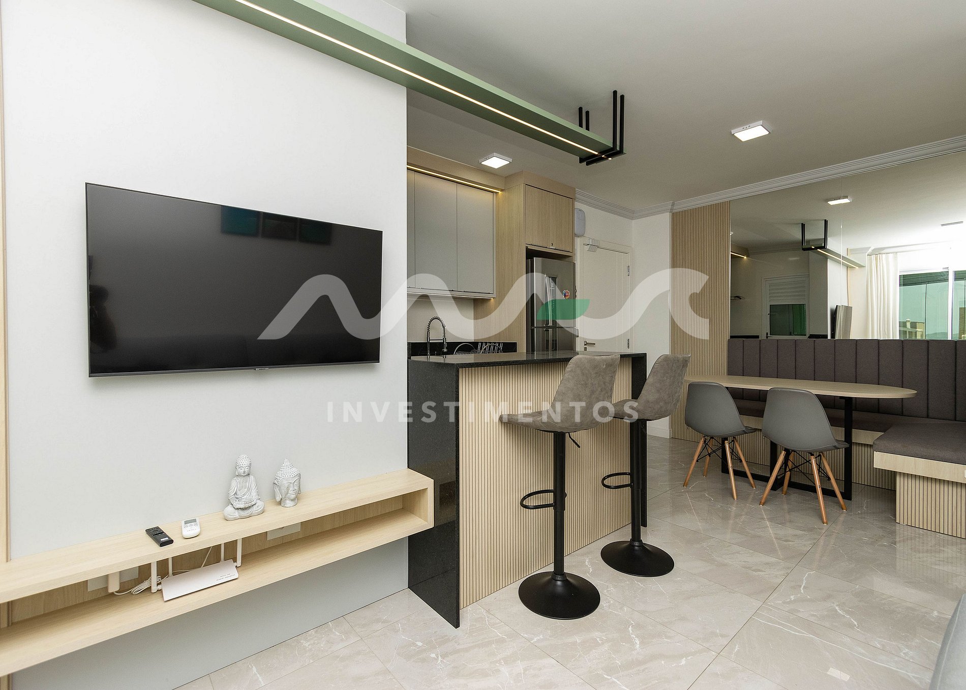 Sala de jantar, estar e cozinha totalmente integradas e equipadas