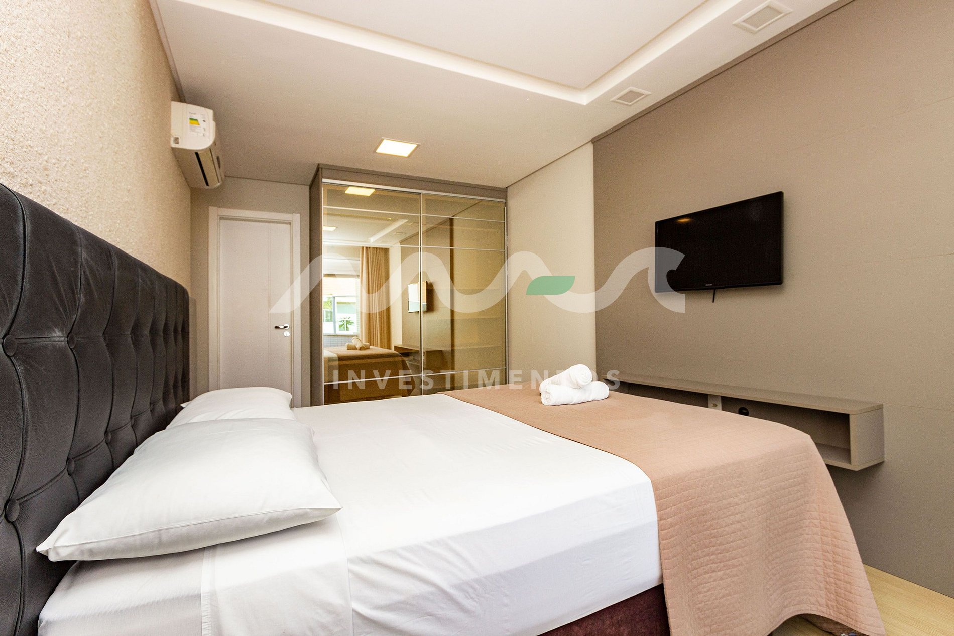 3 quartos com camas de casal, sendo 1 suíte elegante