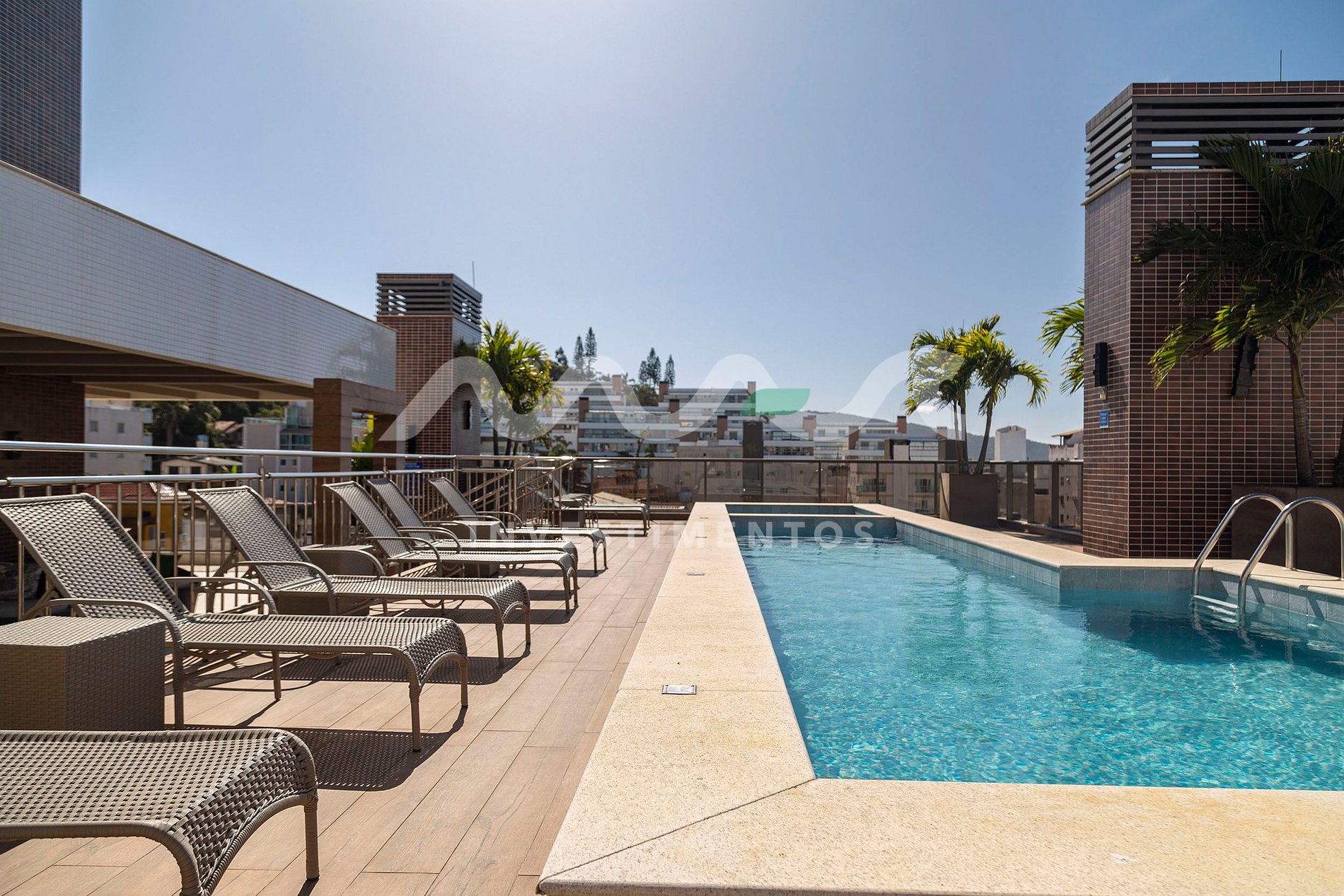 Piscina e academia localizadas no rooftop