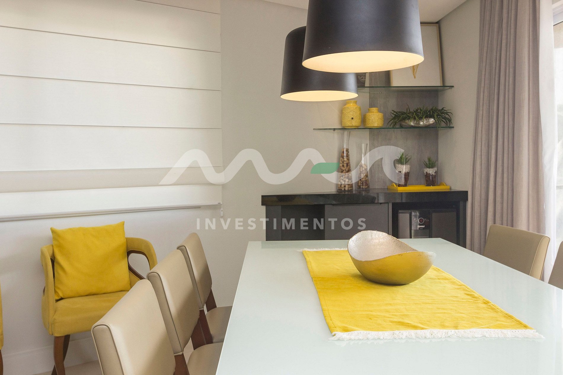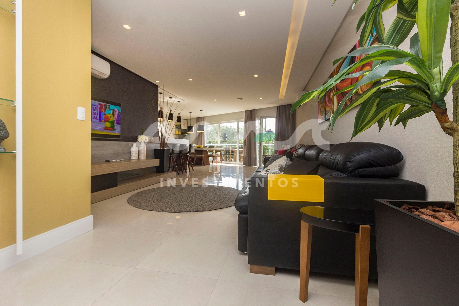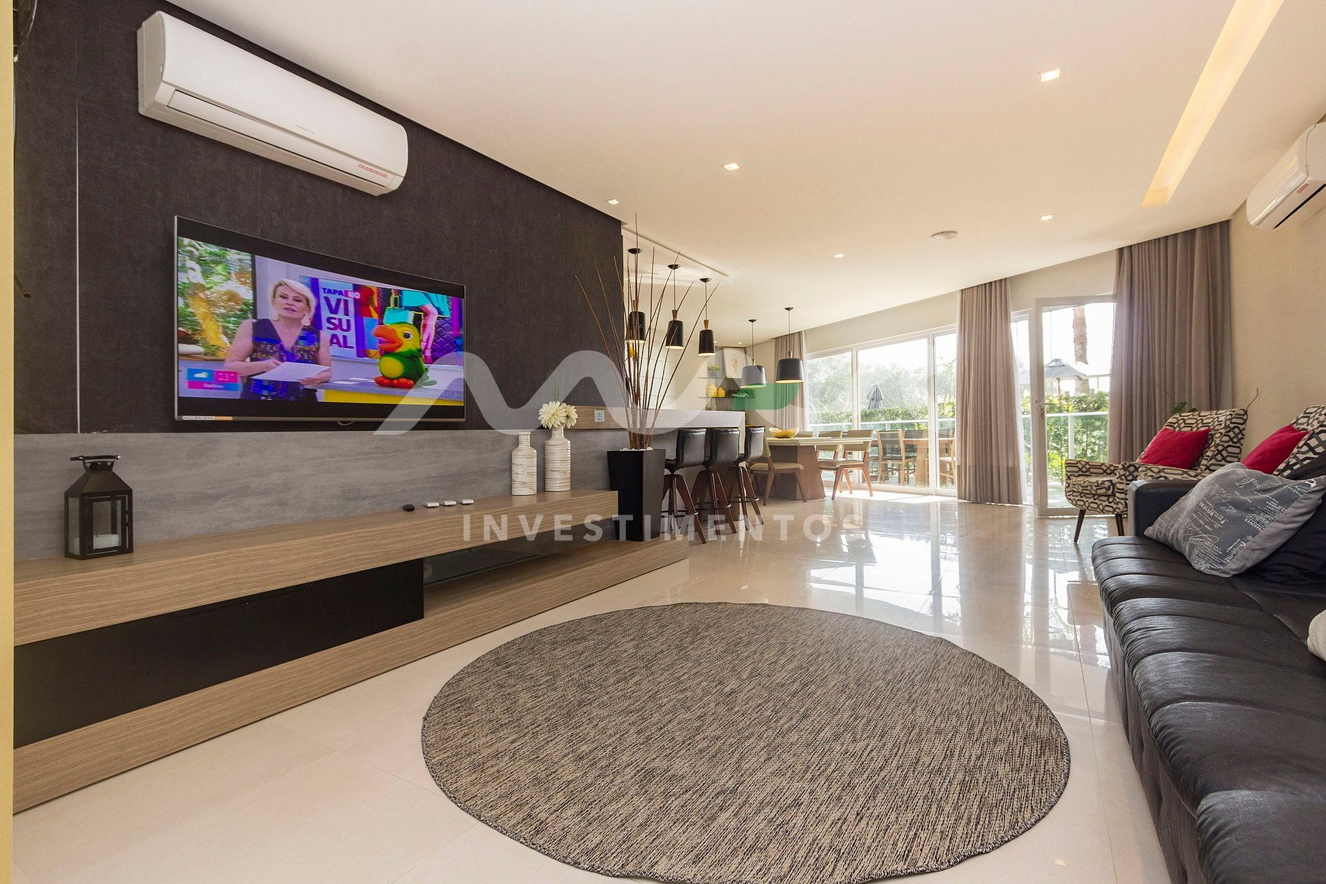 Sala de estar e jantar integradas, com ambiente aconchegante e climatizado