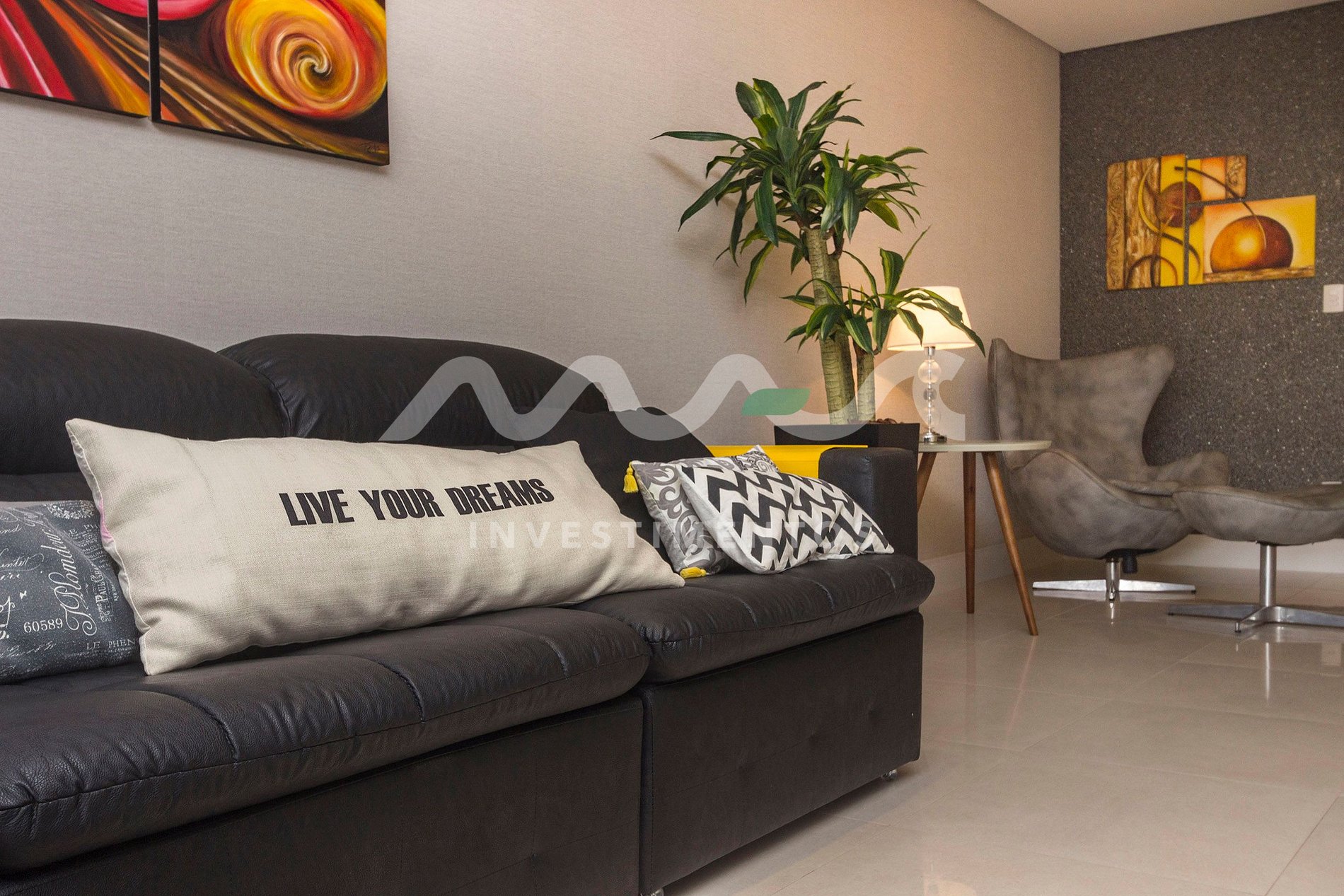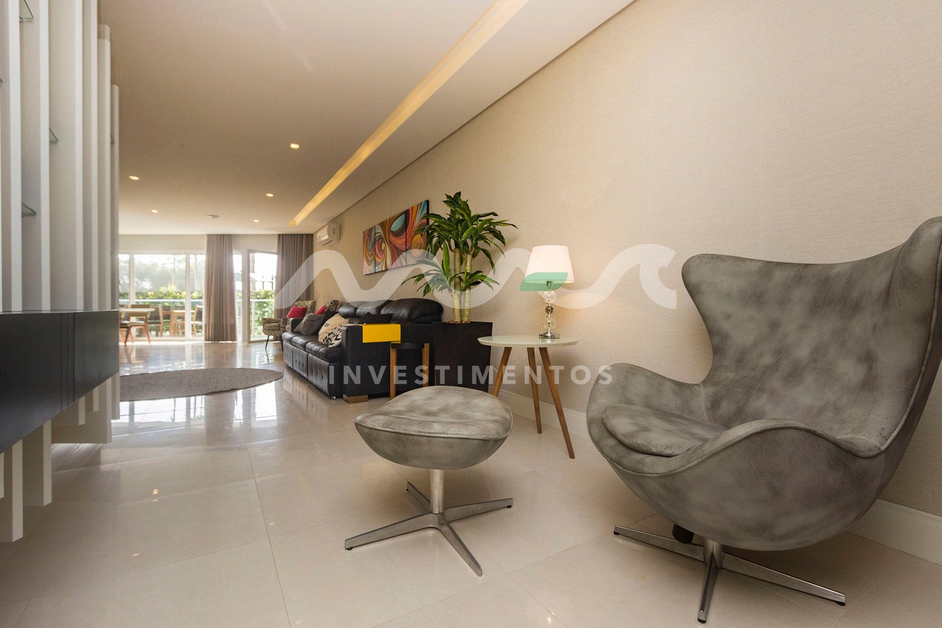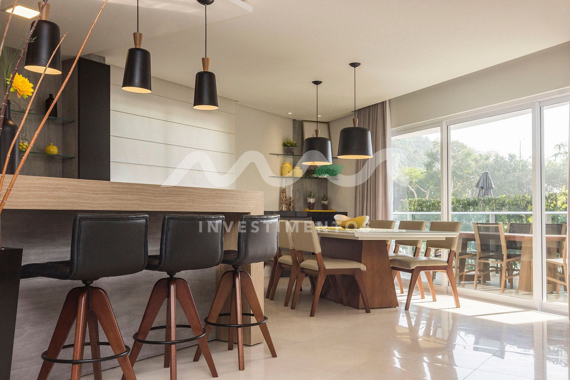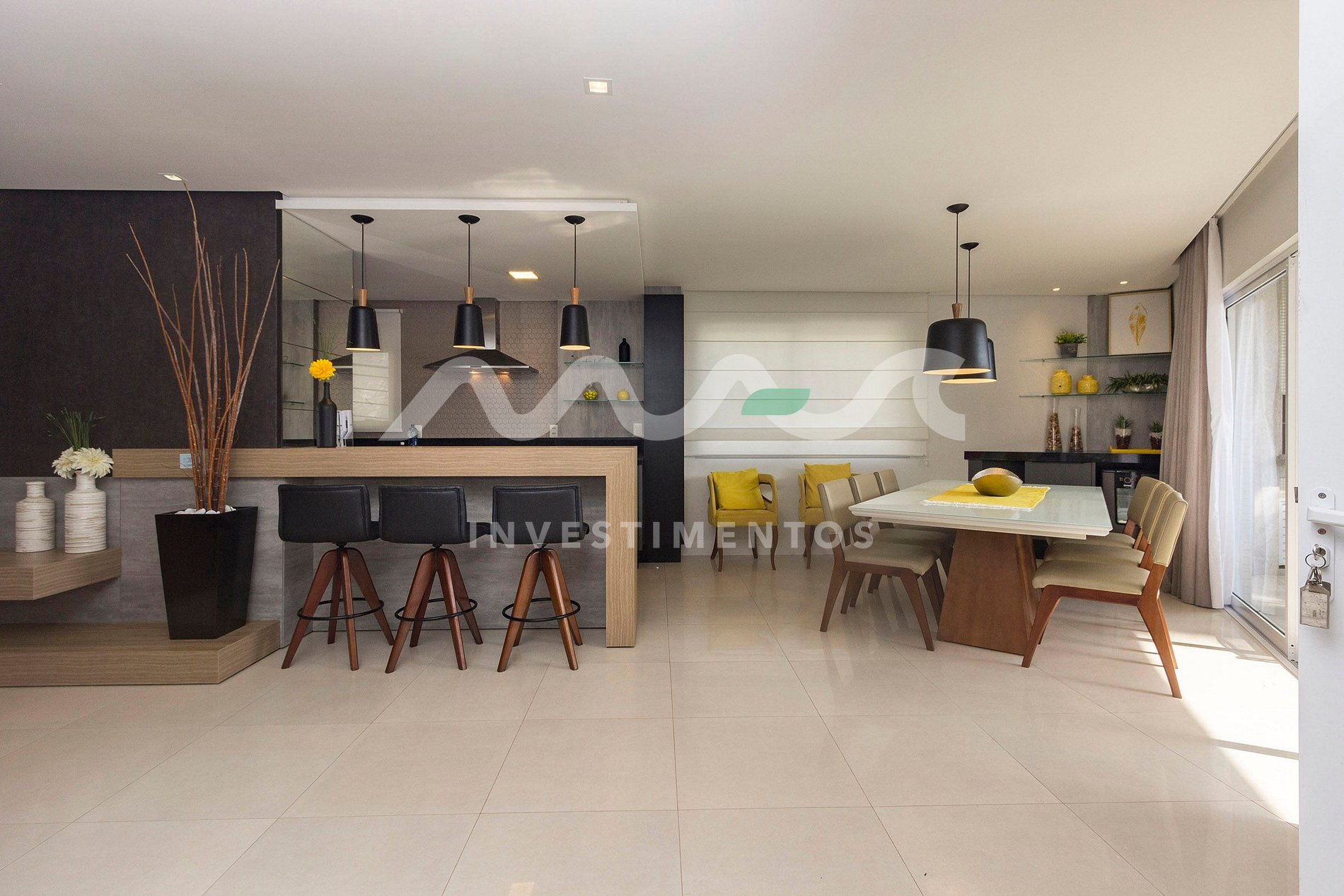 Sala de estar e jantar integradas, com ambiente aconchegante e climatizado