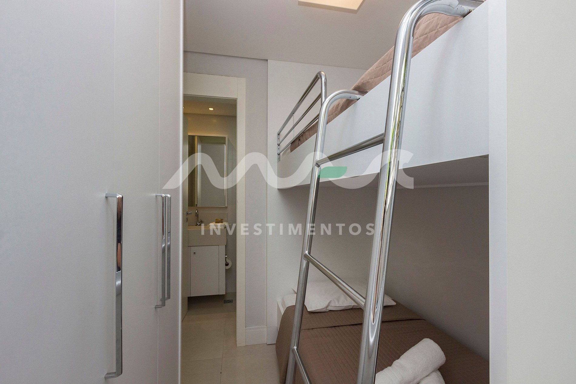 1 quarto com cama beliche e banheiro exclusivo