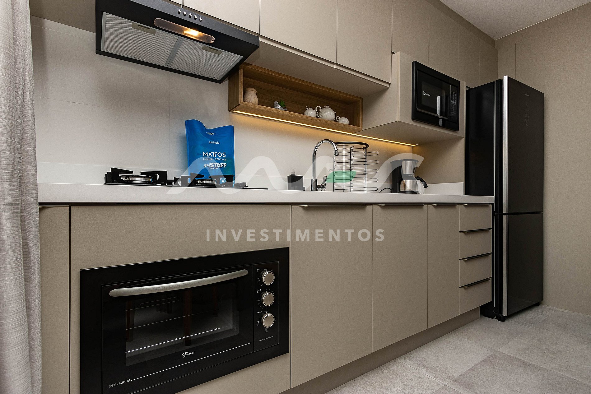Cozinha completa com utensílios e eletrodomésticos