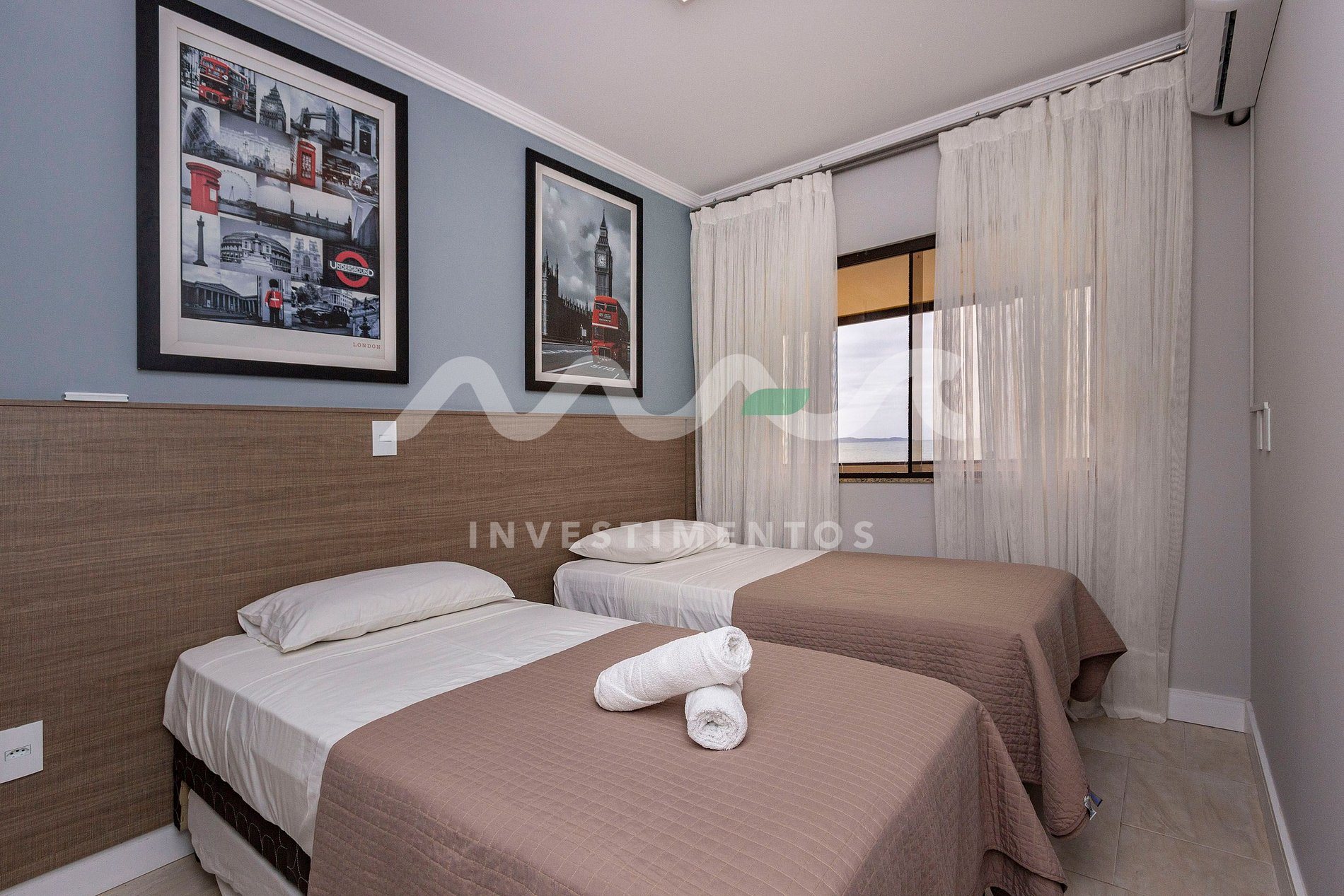 1 quarto com duas camas de solteiro (podem ser unidas formando uma cama de casal)