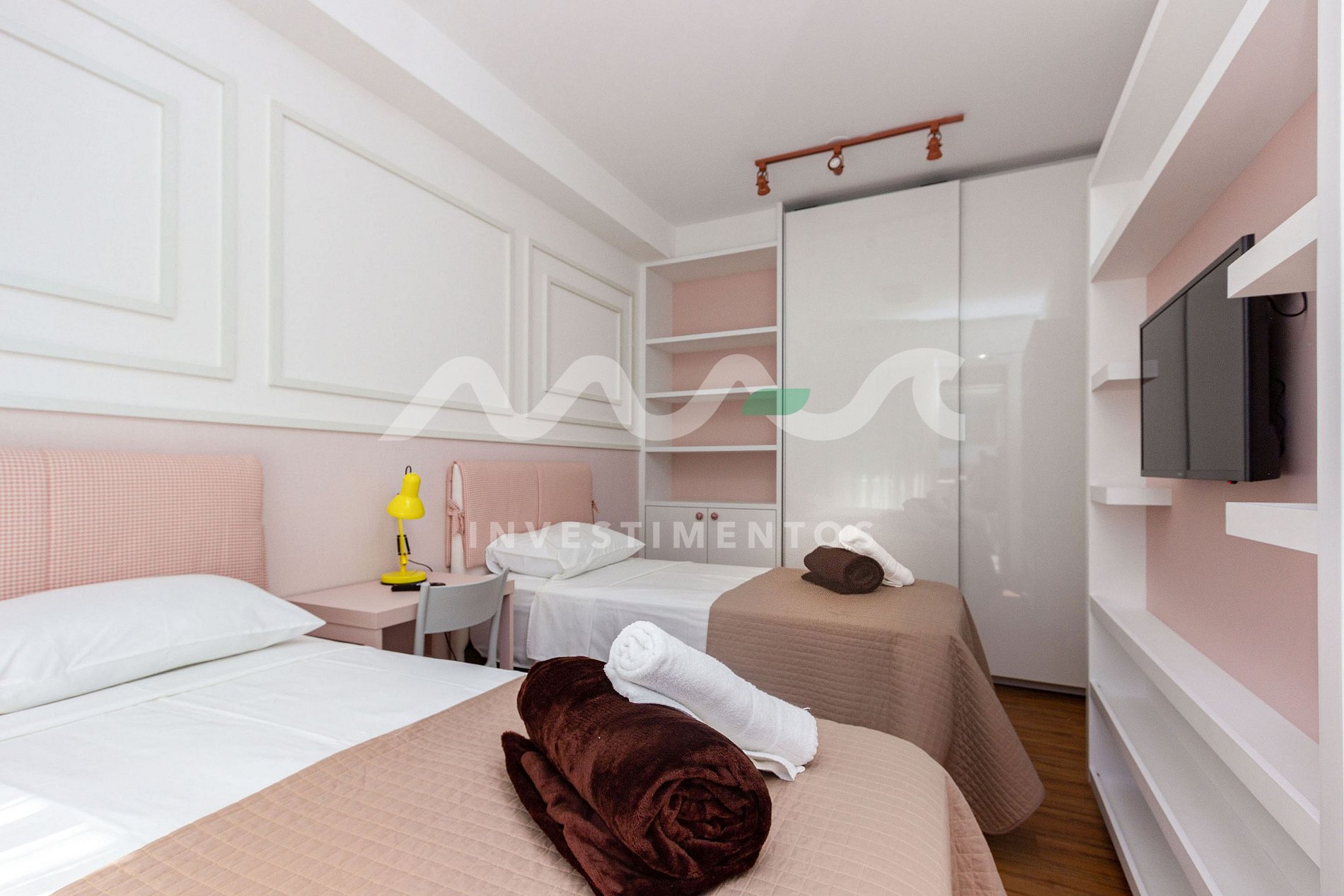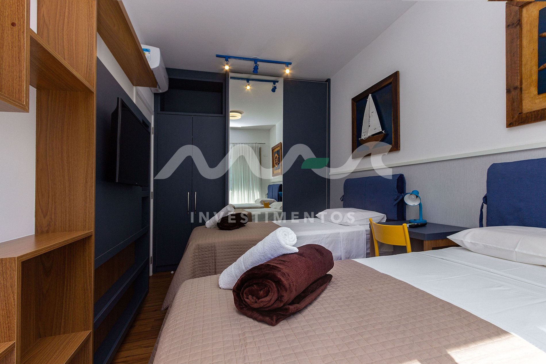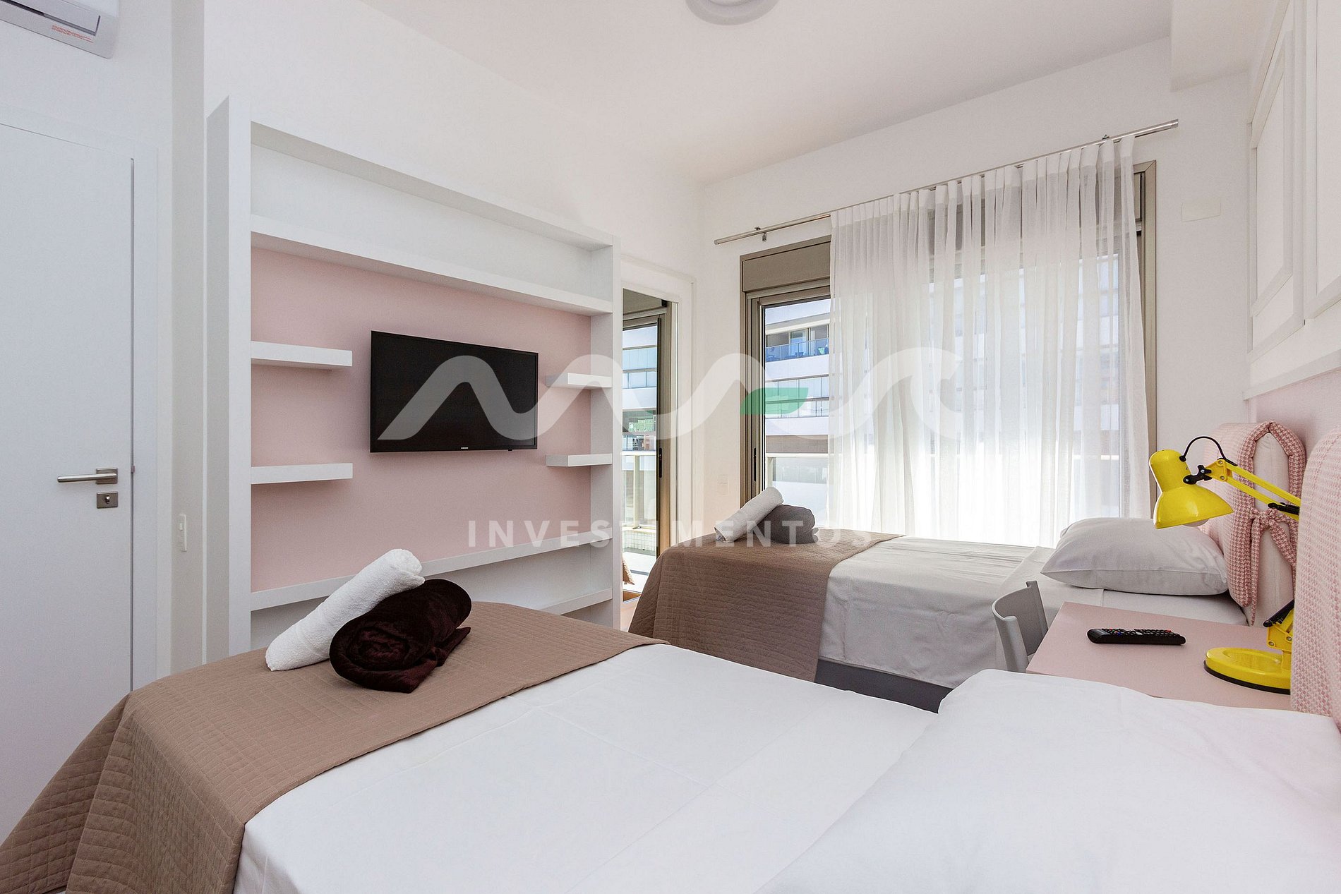 - 1 quarto com 2 camas de solteiro.
