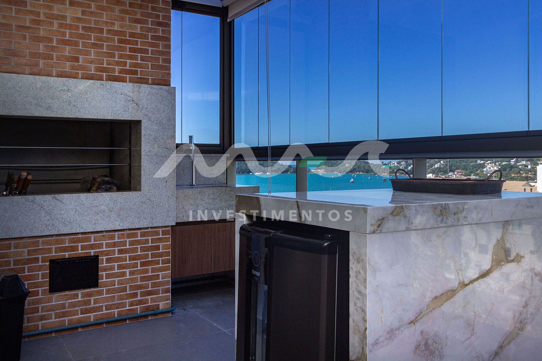 - Ampla sala de jantar, estar, cozinha completa, sacada fechada com churrasqueira, vista cidade e mar, ar condicionado em todos os ambientes.