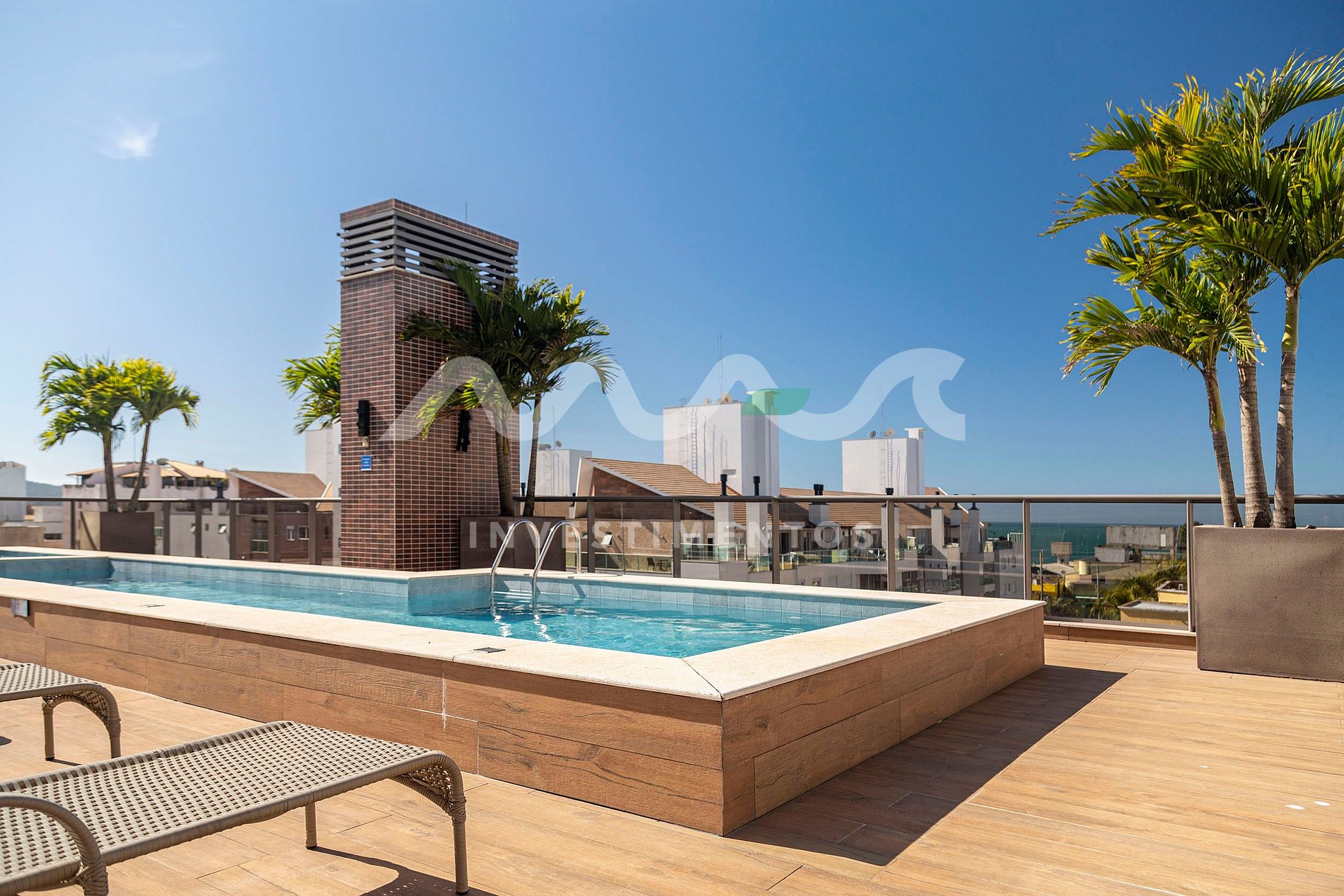 Piscina e academia localizadas no rooftop