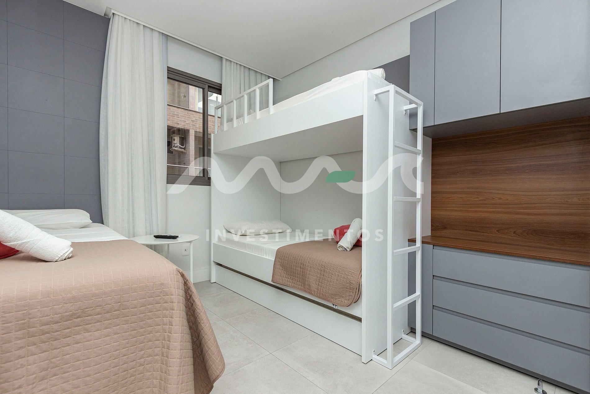 • 1 quarto com uma beliche, cama auxiliar e uma cama de solteiro