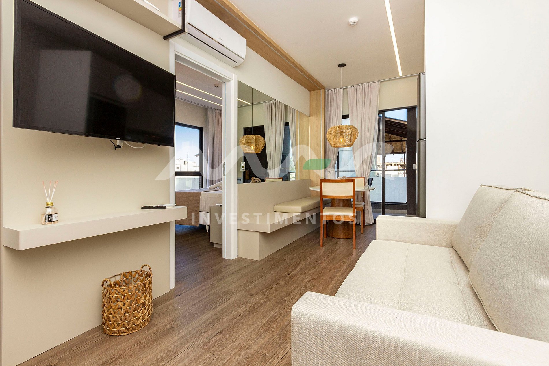 Desfrute de dias incríveis na deslumbrante Praia de Bombas, hospedando-se neste apartamento loft novo, moderno e finamente decorado, com vista para o mar e toda a estrutura para garantir conforto e bem-estar.