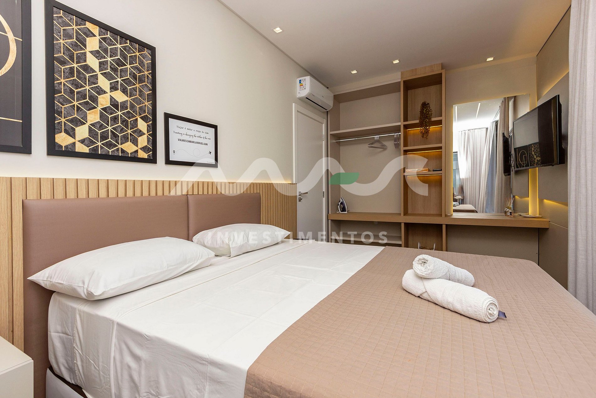 Ambiente higienizado, com cama montada, toalhas de banho e rosto, amenities de higiene e muito conforto