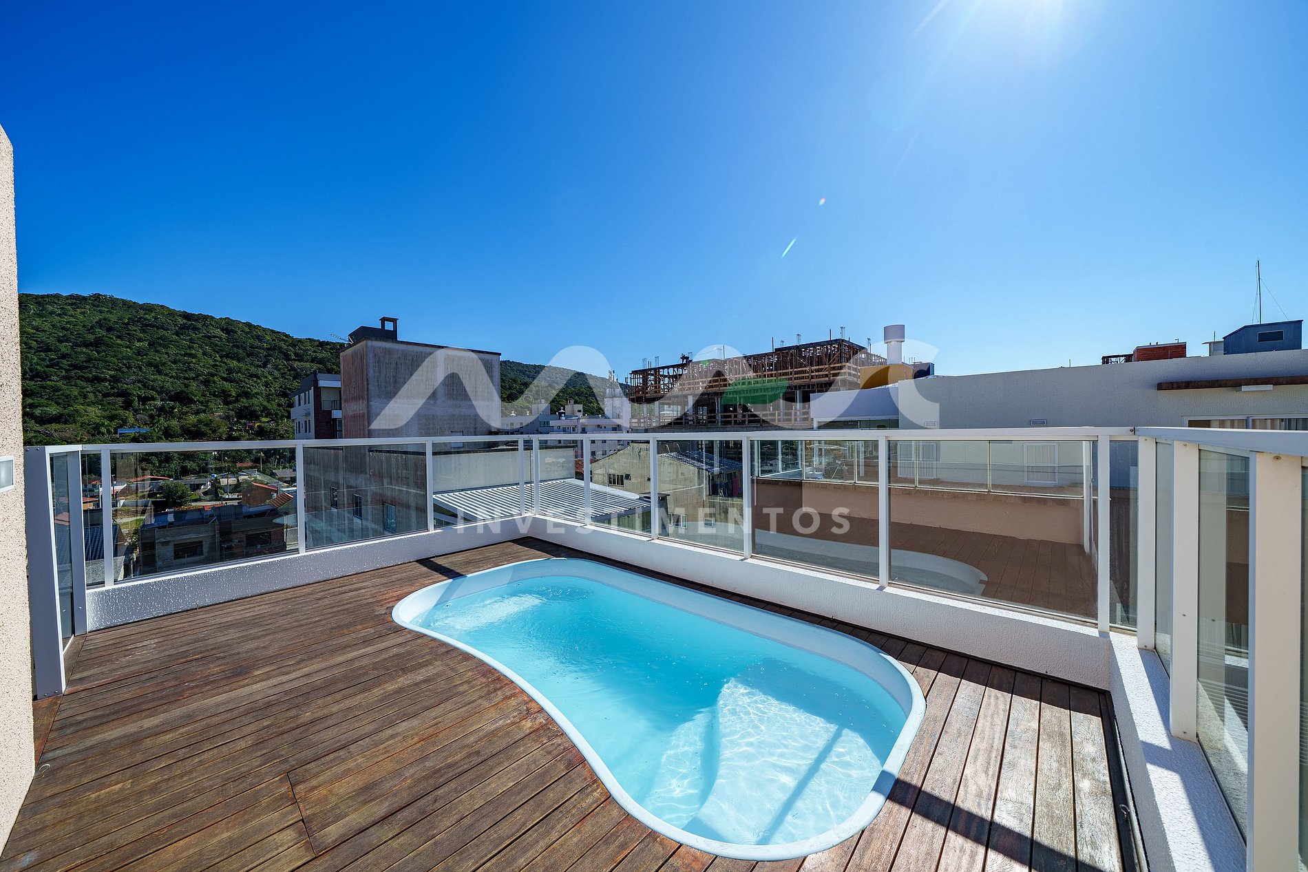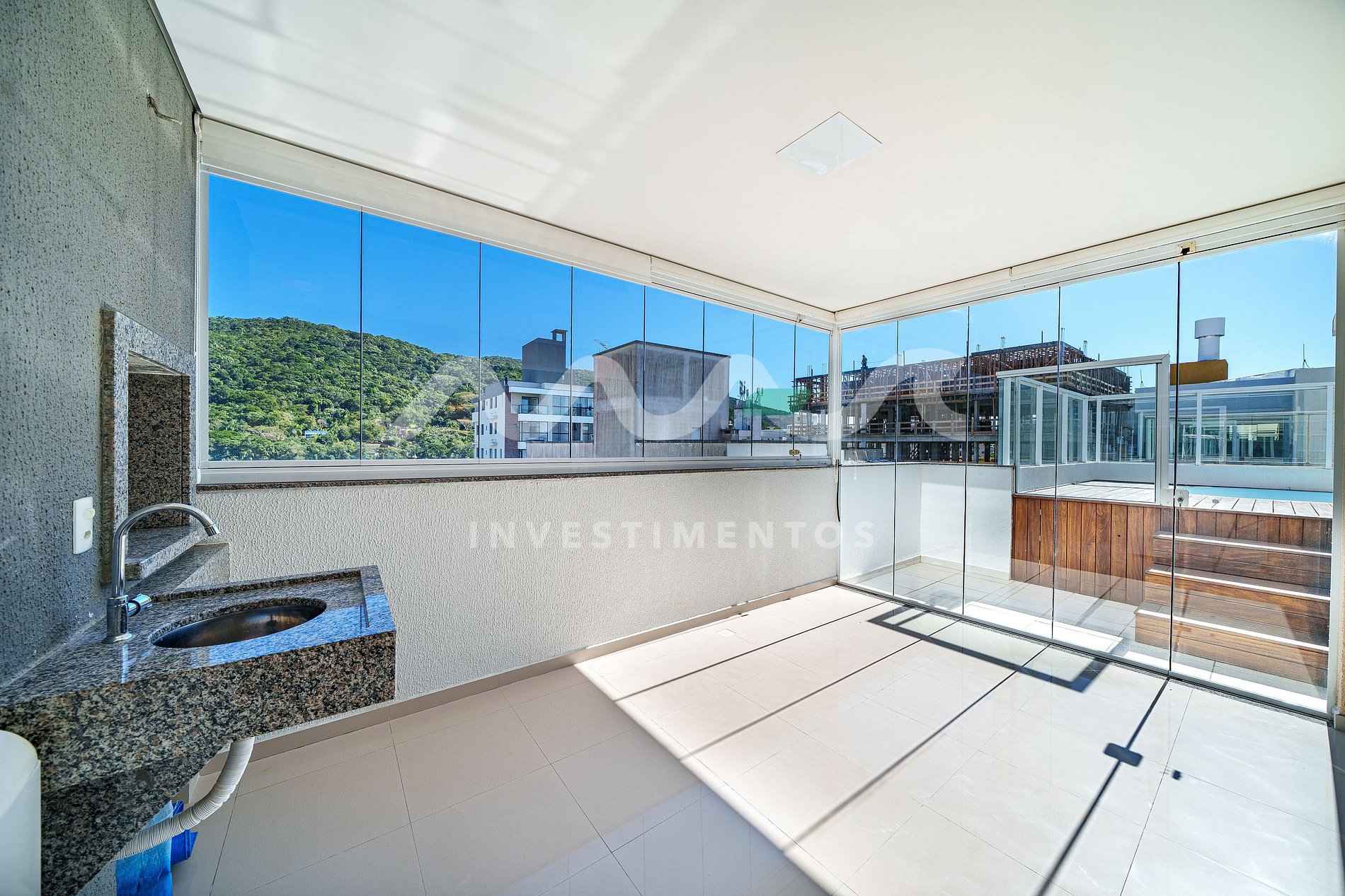 Ampla sacada com churrasqueira e uma piscina privativa para aproveitar momentos únicos com total privacidade.